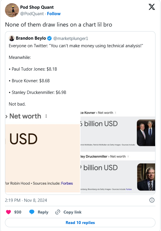 I can tell you something from personal experience (hypothetically). Hypothetically, I work at one of big pod shops. And hypothetically, I might have worked under a senior Macro PM who was absolutely killing it, and he defo drew some lines on charts. (All these are hypotheticals, I could be just a uni drop out or wtv)